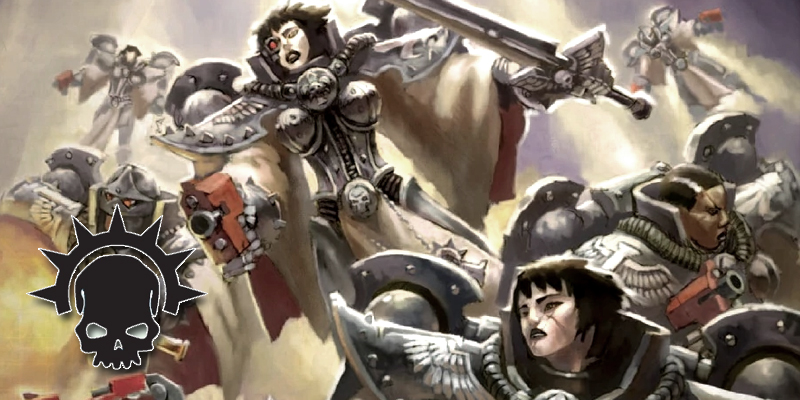 When the largest OrkWAAAGH! ever raised, led by the Warlord Ghazghkull Mag Uruk Thraka, assaulted the Armageddon Sector and began the Third War for Armageddon, the Order of the Argent Shroud responded in kind. They sent seven whole companies of Battle Sisters to assist the beleaguered sector. Four companies were deployed to the Fire Wastes, whilst the remaining three companies spread throughout almost every war zone on Armageddon. In one notable incident during the brutal campaign, the Order found themselves fighting alongside Armageddon militia and the notorious Flesh Tearers Space Marine Chapter. Chapter Master Gabriel Sethdenied Canoness Carmina any tactical counsel whatsoever. After nearly a century in leading her Sisters to war, occasionally alongside Marine Chapters, this treatment came as no surprise. But the Order’s main grievance was with the way the notorious Chapter conducted themselves during the ensuing battle. The Battle Sisters struck Warlord Rukglum’s army as it changed positions from shelling the mining outpost of Gaius Point, to occupying the settlement. Battered by three days’ bombardment, the population of Gaius Point had dug underground and, under the careful ministrations of the Order’s Sisters Superior, were determined to form an ad hoc militia to defend their homes. The Flesh Tearers launched their attack on the Ork column when it was approximately one Imperial Mile from Gaius Point and, hitting the Orks in the rear and flanks, they drove the disorganised enemy into the Battle Sister’s waiting guns. Caught between Sister and Marine, many Orks were slaughtered, with the survivors mounting their vehicles to escape with all haste. The Sisters first noticed something was very wrong when three mobs of Orks, deserted by their cowardly leaders, formed up and assaulted their front line, choosing to engage the Gaius Point militia, rather than the Sisters’ deadly accurate bolt guns. The Flesh Tearers, apparently driven mad by some kind of battle frenzy, crashed into the Ork’s rear ranks just as the first Orks reached the militia. The Flesh Tearers fell upon the Orks in an orgy of blood letting. Many Marines removed their helmets and, eschewing the use of pistols and other ranged weapons, set about the Orks with chainsword and knife and tooth. Canoness Carmina witnessed in mute horror, Marines ripping out the throats of Orks with their bared teeth. The raw fury and love of carnage she saw in their faces as they literally tore the enemy apart made her shudder in fear. The Orks were annihilated within seconds of the Marines’ attack, but the small number of the enemy were simply not enough for the Fleshtearers who by now seemed to have been driven into a fever pitch of absolute blood lust. With no more Orks for them to butcher, they scrambled over the barricades on the perimeter of Gaius Point and smashed into the thin line of militia. Properly driven into a true battle frenzy now, the Flesh Tearers performed acts of the most debauched nature in the name of violence. Men, women and youths, all fell beneath their blades. The old, the infirm, none were spared the Flesh Tearers’ crazed attack. One of the Order’s Sister Superiors later reported that she had personally witnessed cannibalistic acts committed by the frenzied Marines. The Canoness did not witness this, but she believe the Sister Superior’s report. She ordered a hasty withdrawal of her Sisters from the Flesh Tearers with all haste, before they reached their positions. The Canoness later reported the incident to the Inquisition. Her report stated that the Flesh Tearers were unstable beyond redemption and that they were not fit for duty anywhere within their mighty Imperium. The Canononess firmly believed that it was evident that the Flesh Tearers had devolved far beyond any point reached by a loyalist Chapter and requested their immediate destruction. In a separate incident, the Sisters garrisoning the fortified basilica of the Temple of the Emperor Ascendant, located within Hive Helsreach, was overrun and destroyed. Many of the sacred relics of the world’s first colonists were lost. Then-Reclusiarch Grimaldus of the Black Templars (one of only a handful of survivors) managed to save some of these precious relics.