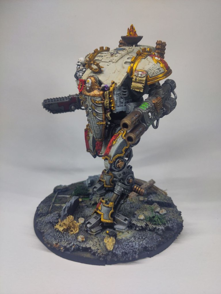 First up, an Armiger Warglaive with the Anchorite Sarcophagus of a Mortifier Engine. Throw in some skeletons, a fire bowl and a halo and you’re good to purge chaos and stuff.