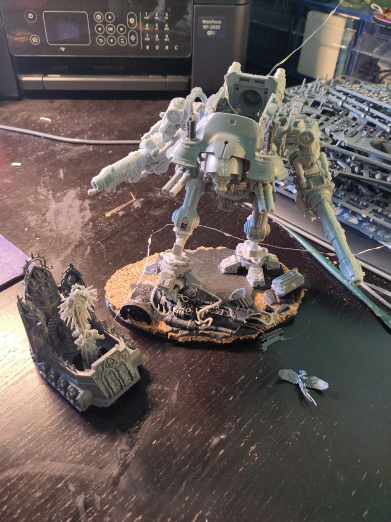 Anyway, I wanted to share some insights and as many of you might notice, the idea of parts combined is not new, but I gave it my own swing. So here is my new mixture of a Knight Castellan and a Sororitas Exorcist!
